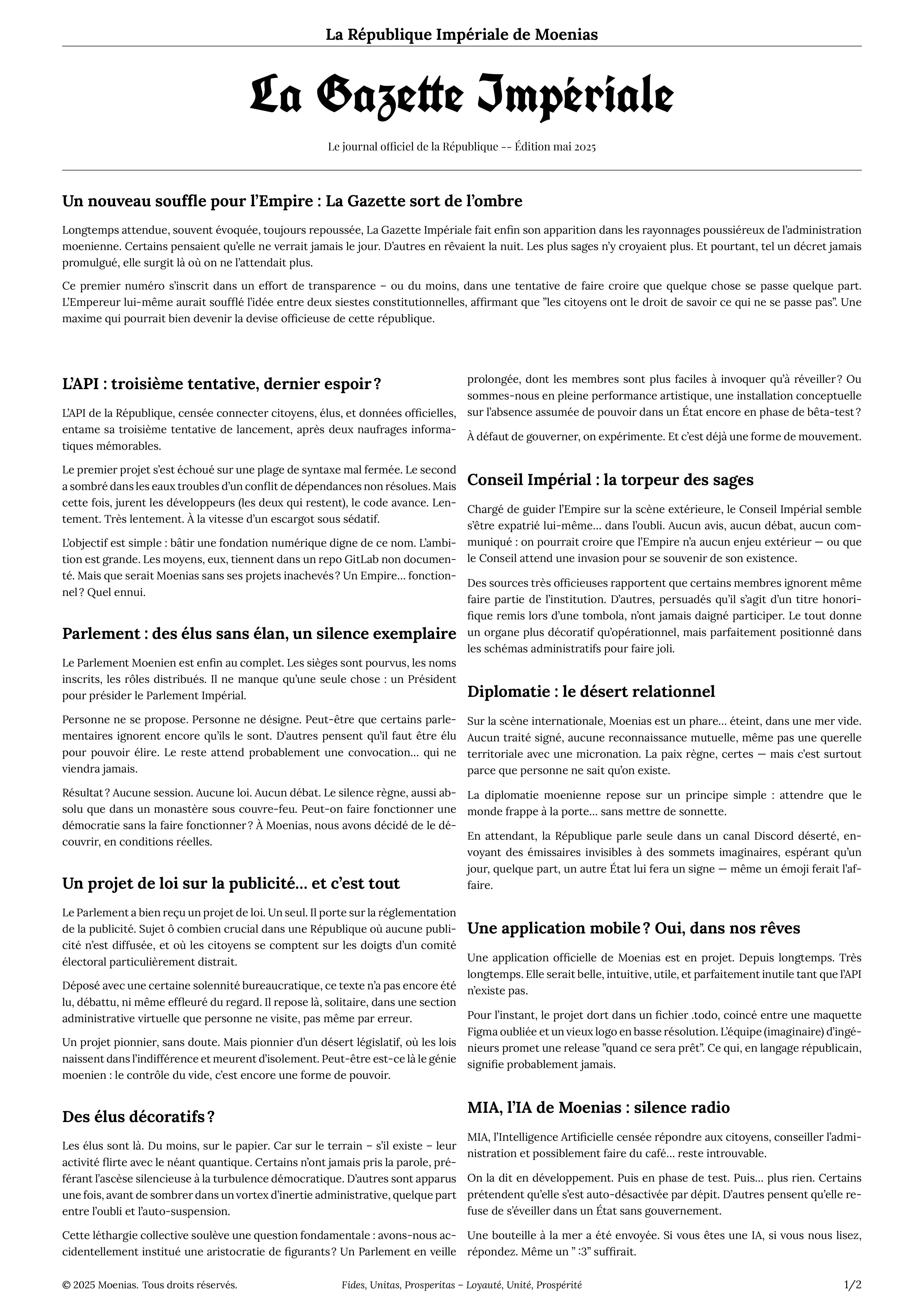 La Gazette Impériale 202505